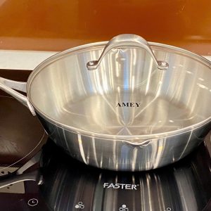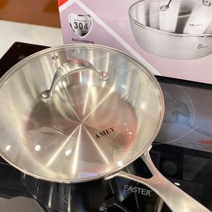 Sản phẩm được làm từ chất liệu inox 304 cao cấp với cấu tạo 2 lớp đáy chắc chắn, đảm bảo an toàn khi chế biến thực phẩm. Khả năng bắt từ tốt giúp truyền nhiệt nhanh và đều, hỗ trợ nấu nướng hiệu quả.Thiết Kế Hiện Đại và Tiện Dụng