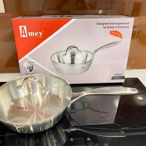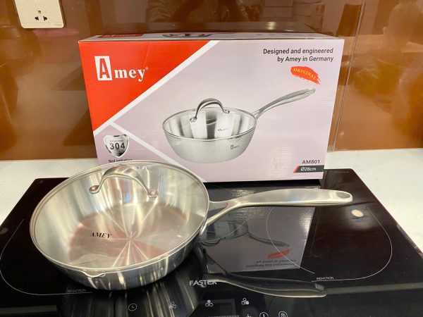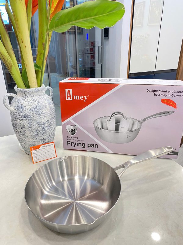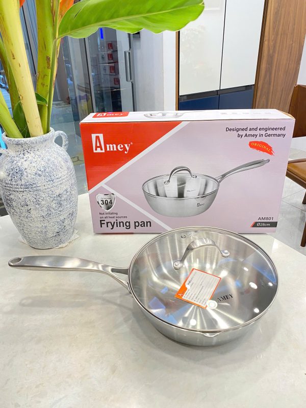 Chảo sen inox 304 chống dính tự thân Amey nắp kính 28cm AM801