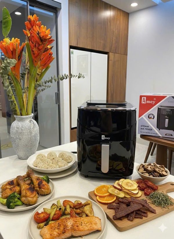 Nồi chiên hơi nước AMEY AM024 giúp bạn chế biến nhiều món ăn khác nhau chỉ với một thiết bị: hấp, chiên không dầu, nướng, sấy khô… phù hợp cho gia đình đông người và đảm bảo bữa ăn luôn thơm ngon, lành mạnh.